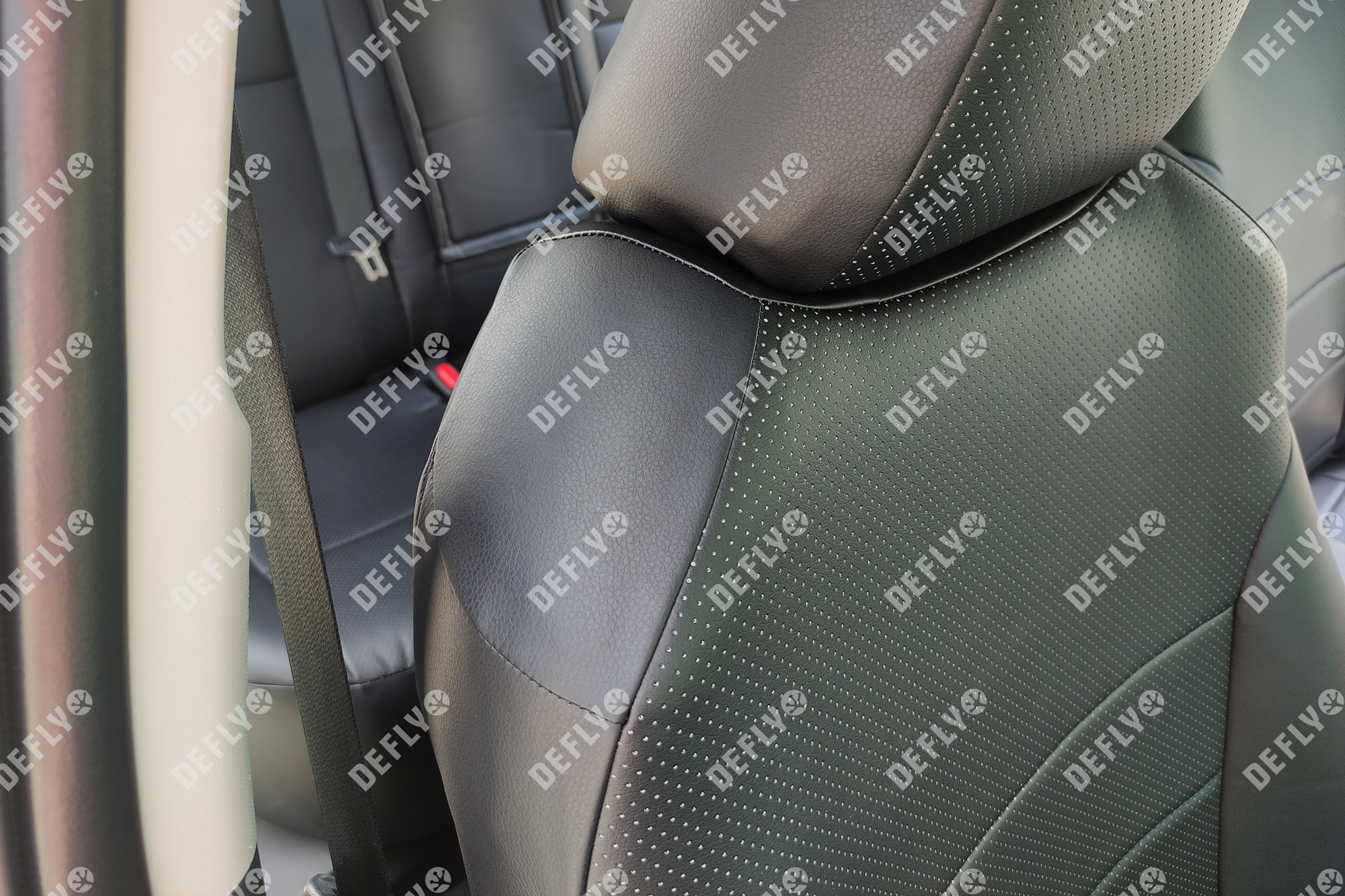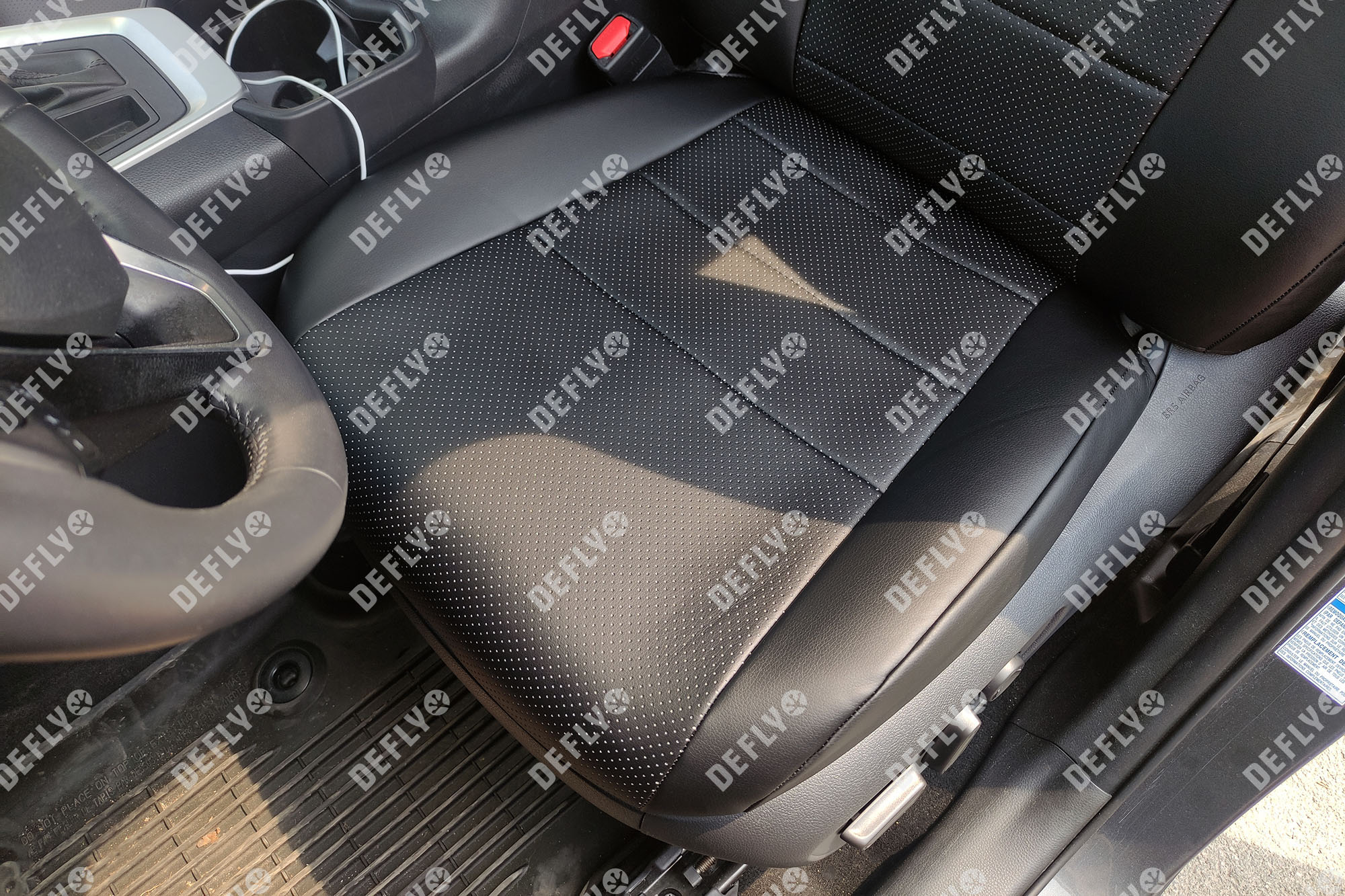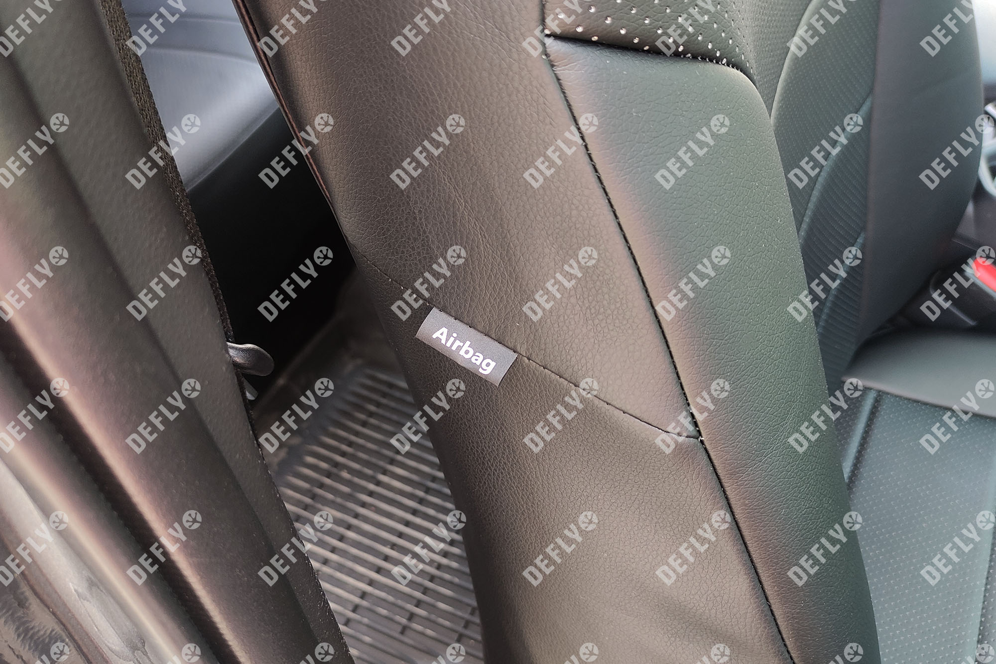 Материал: Экокожа гладкая, экокожа перфорированная, Цвет: Черный (оттенок ткани может незначительно отличаться). Модельные чехлы от производителя “Defly” индивидуально сконструированы для каждого автомобиля. Изготовленные по лекалам оригинальных кресел, чехлы гарантируют идеальную посадку. В комплектацию входят детали всех элементов салона: передних кресел, заднего дивана, третьего ряда сидений, подголовников, подлокотников и т.д. Спинки передних кресел дополнены карманами. Все швы и технологические отверстия обработаны на оверлоке. Чехлы не ограничивают заводскую функциональность салона. Наличие в чехлах специального распускаемого шва не препятствует своевременному и полному раскрытию подушек безопасности. Специально разработанная система креплений позволяет надежно зафиксировать изделия. Авточехлы изготовлены из двух видов экокожи черного цвета: гладкой и перфорированной. Перфорированная экокожа используется в центральных элементах, что обеспечивает циркуляцию воздуха. * Представленные фотографии являются примером исполнения и служат для демонстрации материалов и конструкции чехлов.