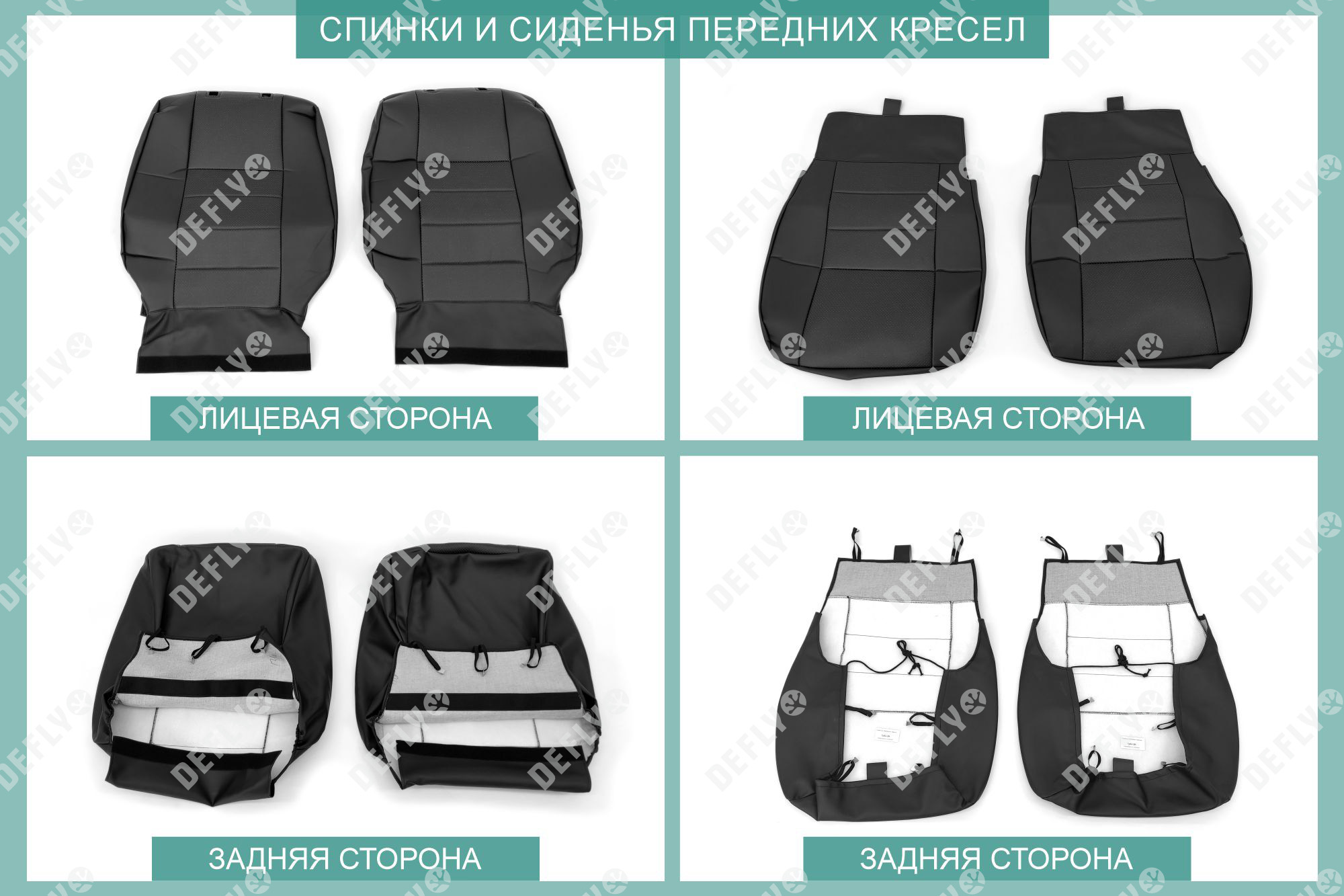 Материал: Экокожа гладкая, экокожа перфорированная, Цвет: Черный (оттенок ткани может незначительно отличаться). Модельные чехлы от производителя “Defly” индивидуально сконструированы для каждого автомобиля. Изготовленные по лекалам оригинальных кресел, чехлы гарантируют идеальную посадку. В комплектацию входят детали всех элементов салона: передних кресел, заднего дивана, третьего ряда сидений, подголовников, подлокотников и т.д. Спинки передних кресел дополнены карманами. Все швы и технологические отверстия обработаны на оверлоке. Чехлы не ограничивают заводскую функциональность салона. Наличие в чехлах специального распускаемого шва не препятствует своевременному и полному раскрытию подушек безопасности. Специально разработанная система креплений позволяет надежно зафиксировать изделия. Авточехлы изготовлены из двух видов экокожи черного цвета: гладкой и перфорированной. Перфорированная экокожа используется в центральных элементах, что обеспечивает циркуляцию воздуха. * Представленные фотографии являются примером исполнения и служат для демонстрации материалов и конструкции чехлов.