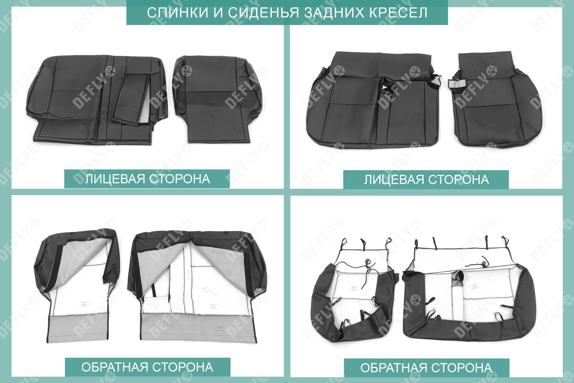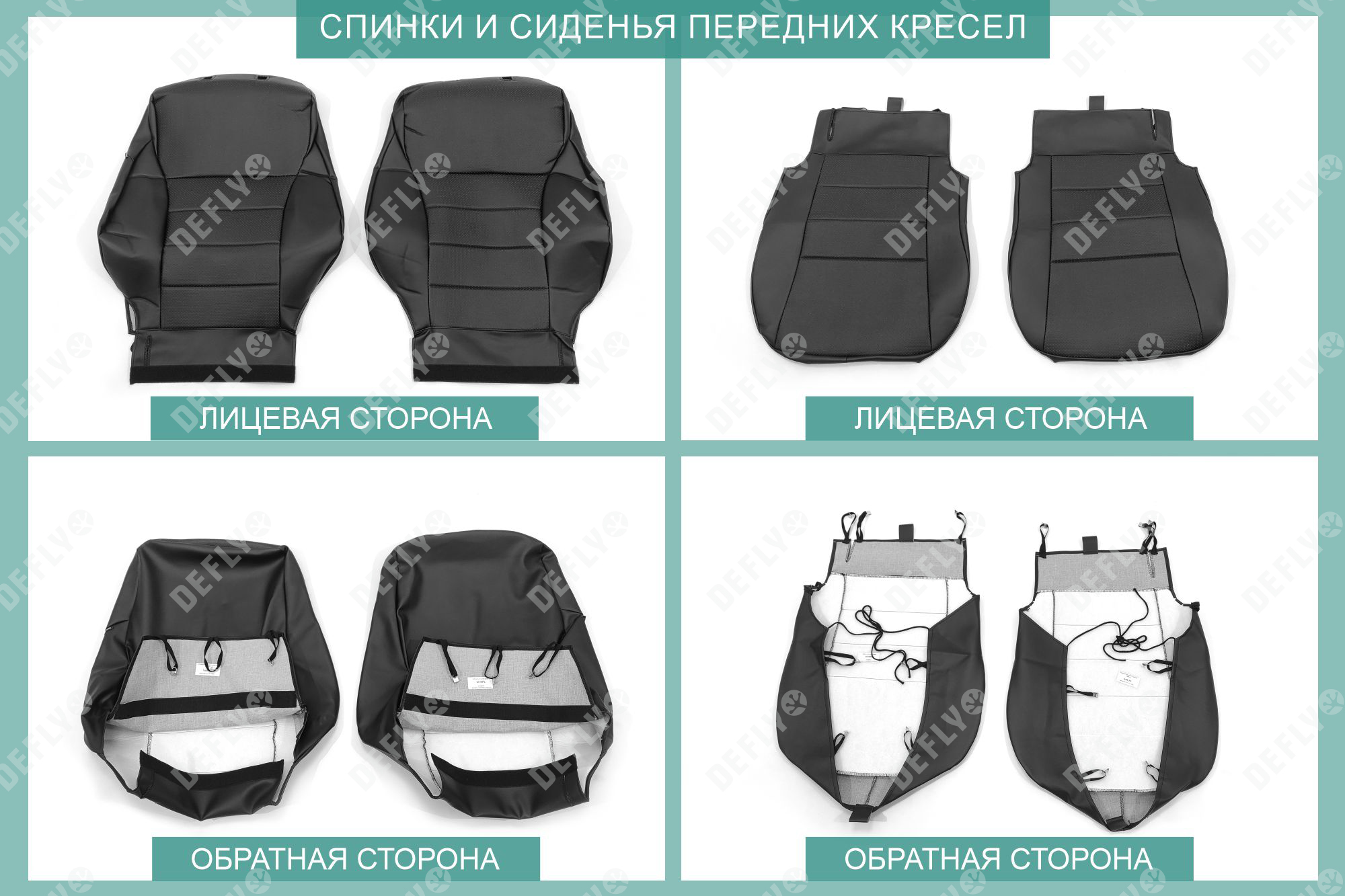 Материал: Экокожа гладкая, экокожа перфорированная, Цвет: Черный (оттенок ткани может незначительно отличаться). Модельные чехлы от производителя “Defly” индивидуально сконструированы для каждого автомобиля. Изготовленные по лекалам оригинальных кресел, чехлы гарантируют идеальную посадку. В комплектацию входят детали всех элементов салона: передних кресел, заднего дивана, третьего ряда сидений, подголовников, подлокотников и т.д. Спинки передних кресел дополнены карманами. Все швы и технологические отверстия обработаны на оверлоке. Чехлы не ограничивают заводскую функциональность салона. Наличие в чехлах специального распускаемого шва не препятствует своевременному и полному раскрытию подушек безопасности. Специально разработанная система креплений позволяет надежно зафиксировать изделия. Авточехлы изготовлены из двух видов экокожи черного цвета: гладкой и перфорированной. Перфорированная экокожа используется в центральных элементах, что обеспечивает циркуляцию воздуха. * Представленные фотографии являются примером исполнения и служат для демонстрации материалов и конструкции чехлов.