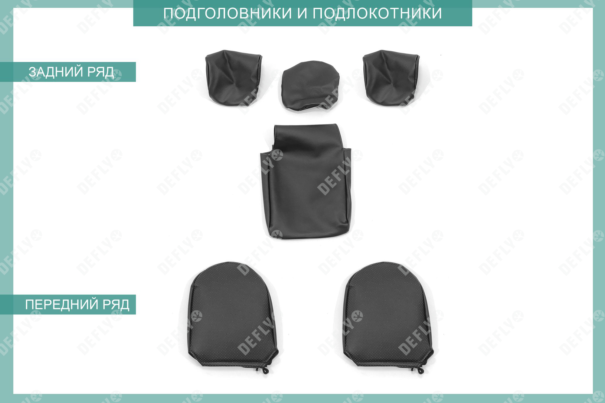 Первый ряд: Подголовник переднего кресла – 2 шт Спинка переднего кресла – 2 шт Сиденье переднего кресла – 2 шт Второй ряд: Подголовник заднего ряда – 2 шт Подголовник заднего ряда центральный – 1 шт Спинка дивана заднего ряда малая – 1 шт Спинка дивана заднего рада большая – 1 шт Сиденье дивана заднего ряда большое – 1 шт Сиденье дивана заднего ряда малое -1 шт Подлокотник заднего ряда – 1 шт Итого: 14 изделий