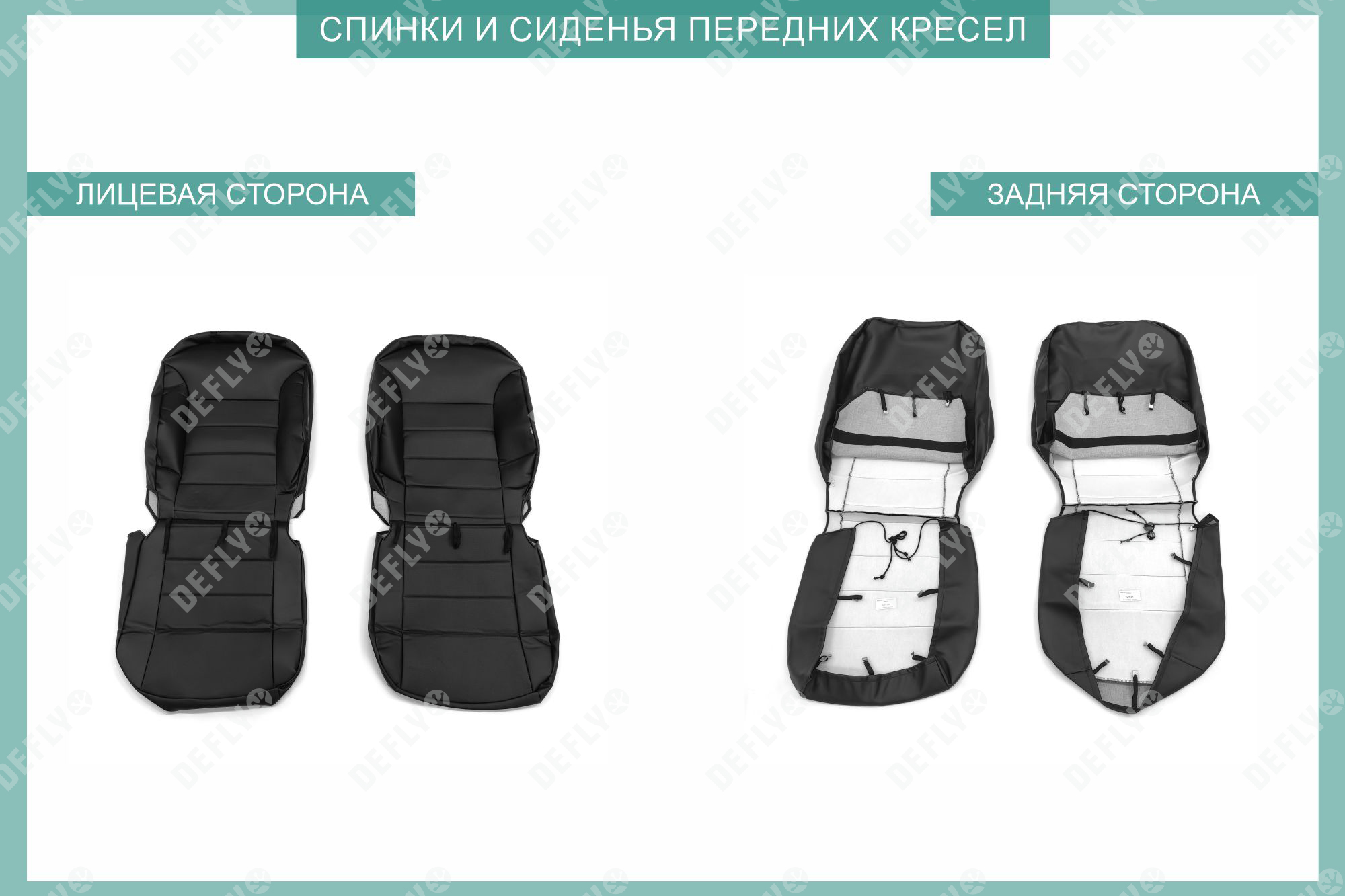 Материал: Экокожа гладкая, экокожа перфорированная, Цвет: Черный (оттенок ткани может незначительно отличаться). Модельные чехлы от производителя “Defly” индивидуально сконструированы для каждого автомобиля. Изготовленные по лекалам оригинальных кресел, чехлы гарантируют идеальную посадку. Все швы и технологические отверстия обработаны на оверлоке. Чехлы не ограничивают заводскую функциональность салона. Наличие в чехлах специального распускаемого шва не препятствует своевременному и полному раскрытию подушек безопасности. Специально разработанная система креплений позволяет надежно зафиксировать изделия. Авточехлы изготовлены из двух видов экокожи черного цвета: гладкой и перфорированной. Перфорированная экокожа используется в центральных элементах, что обеспечивает циркуляцию воздуха. * Представленные фотографии являются примером исполнения и служат для демонстрации материалов и конструкции чехлов.