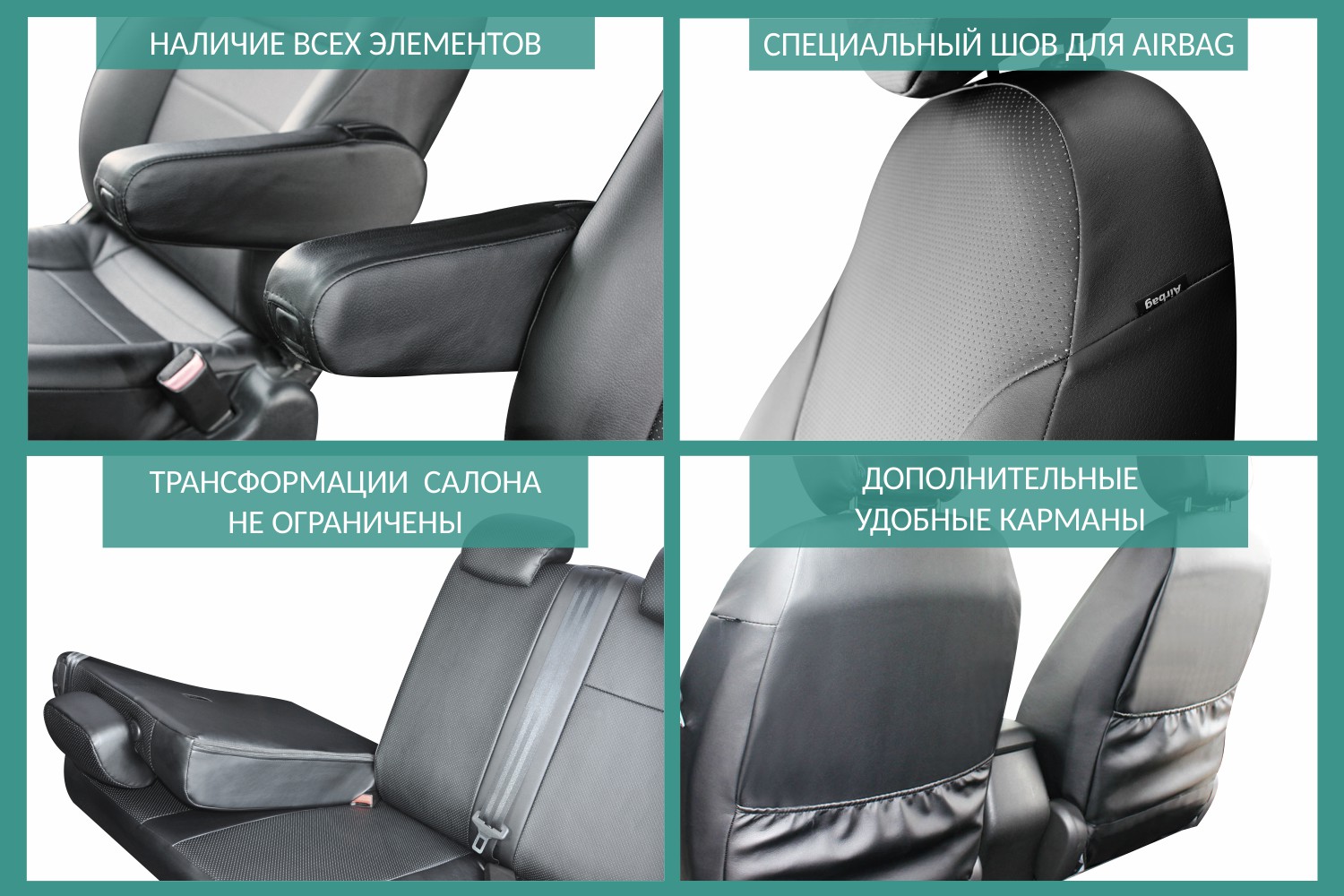 Первый ряд: Подголовник переднего кресла – 2 шт Спинка переднего кресла – 2 шт Сиденье переднего кресла – 2 шт Подлокотник переднего ряда центральный – 1 шт Второй ряд: Подголовник заднего ряда – 2 шт Подголовник заднего ряда центральный – 1 шт Спинка дивана заднего ряда – 2 шт Сиденье дивана заднего ряда– 2 шт Итого: 14 изделий