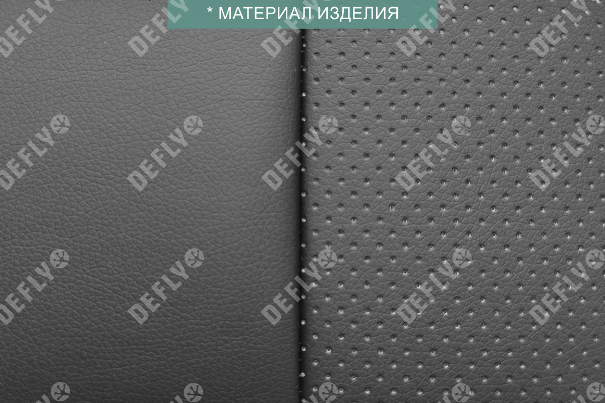 Материал: Экокожа гладкая, экокожа перфорированная, Цвет: Черный (оттенок ткани может незначительно отличаться). Модельные чехлы от производителя “Defly” индивидуально сконструированы для каждого автомобиля. Изготовленные по лекалам оригинальных кресел, чехлы гарантируют идеальную посадку. Все швы и технологические отверстия обработаны на оверлоке. Чехлы не ограничивают заводскую функциональность салона. Наличие в чехлах специального распускаемого шва не препятствует своевременному и полному раскрытию подушек безопасности. Специально разработанная система креплений позволяет надежно зафиксировать изделия. Авточехлы изготовлены из двух видов экокожи черного цвета: гладкой и перфорированной. Перфорированная экокожа используется в центральных элементах, что обеспечивает циркуляцию воздуха. * Представленные фотографии являются примером исполнения и служат для демонстрации материалов и конструкции чехлов.