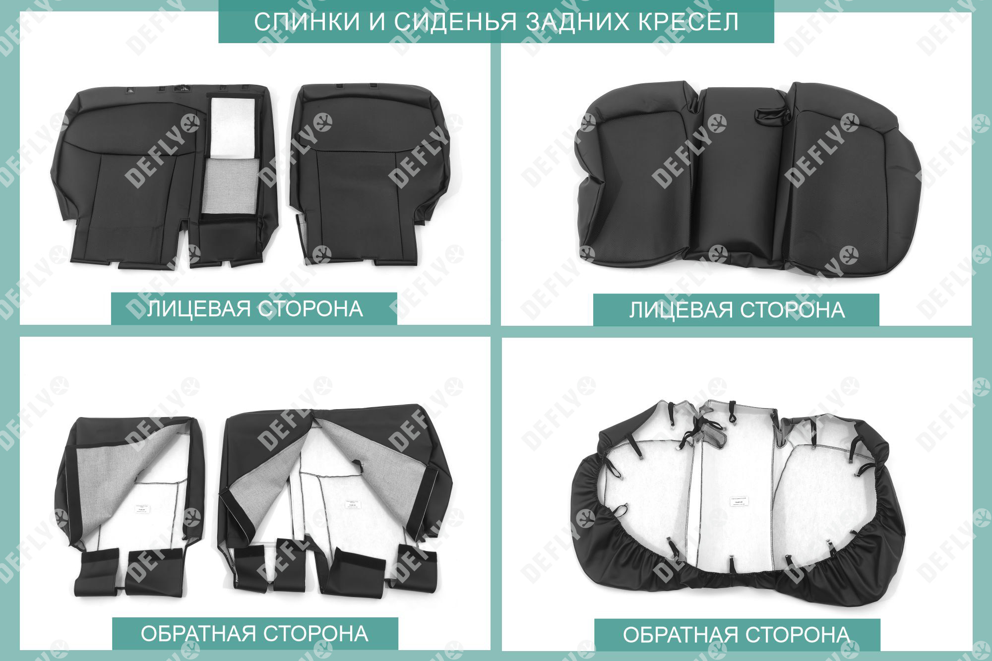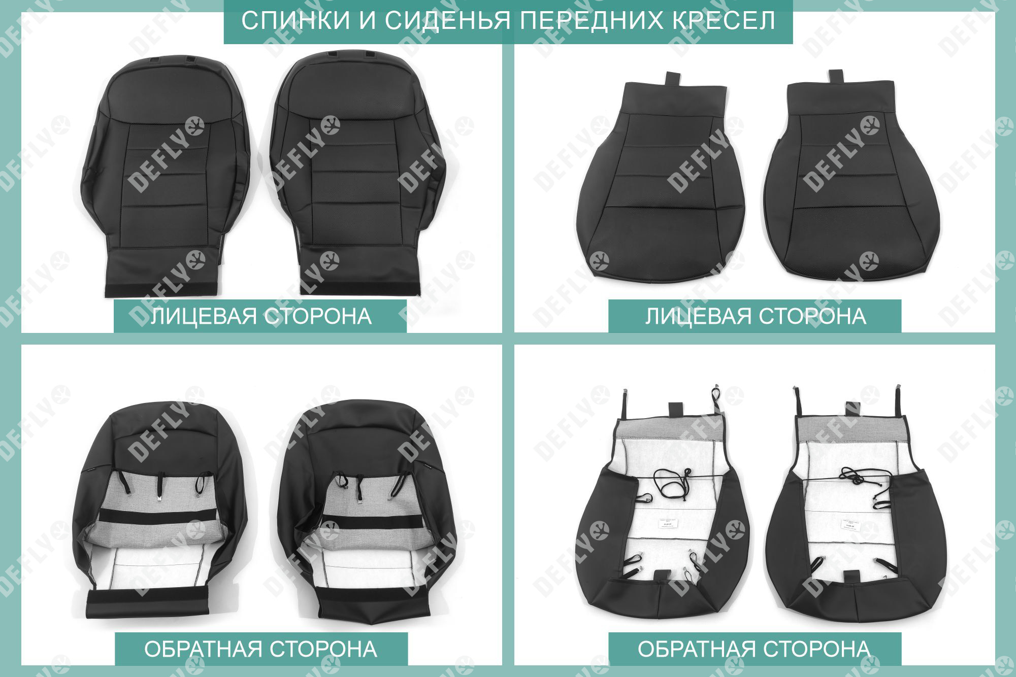 Материал: Экокожа гладкая, экокожа перфорированная, Цвет: Черный (оттенок ткани может незначительно отличаться). Модельные чехлы от производителя “Defly” индивидуально сконструированы для каждого автомобиля. Изготовленные по лекалам оригинальных кресел, чехлы гарантируют идеальную посадку. В комплектацию входят детали всех элементов салона: передних кресел, заднего дивана, третьего ряда сидений, подголовников, подлокотников и т.д. Спинки передних кресел дополнены карманами. Все швы и технологические отверстия обработаны на оверлоке. Чехлы не ограничивают заводскую функциональность салона. Наличие в чехлах специального распускаемого шва не препятствует своевременному и полному раскрытию подушек безопасности. Специально разработанная система креплений позволяет надежно зафиксировать изделия. Авточехлы изготовлены из двух видов экокожи черного цвета: гладкой и перфорированной. Перфорированная экокожа используется в центральных элементах, что обеспечивает циркуляцию воздуха. * Представленные фотографии являются примером исполнения и служат для демонстрации материалов и конструкции чехлов.