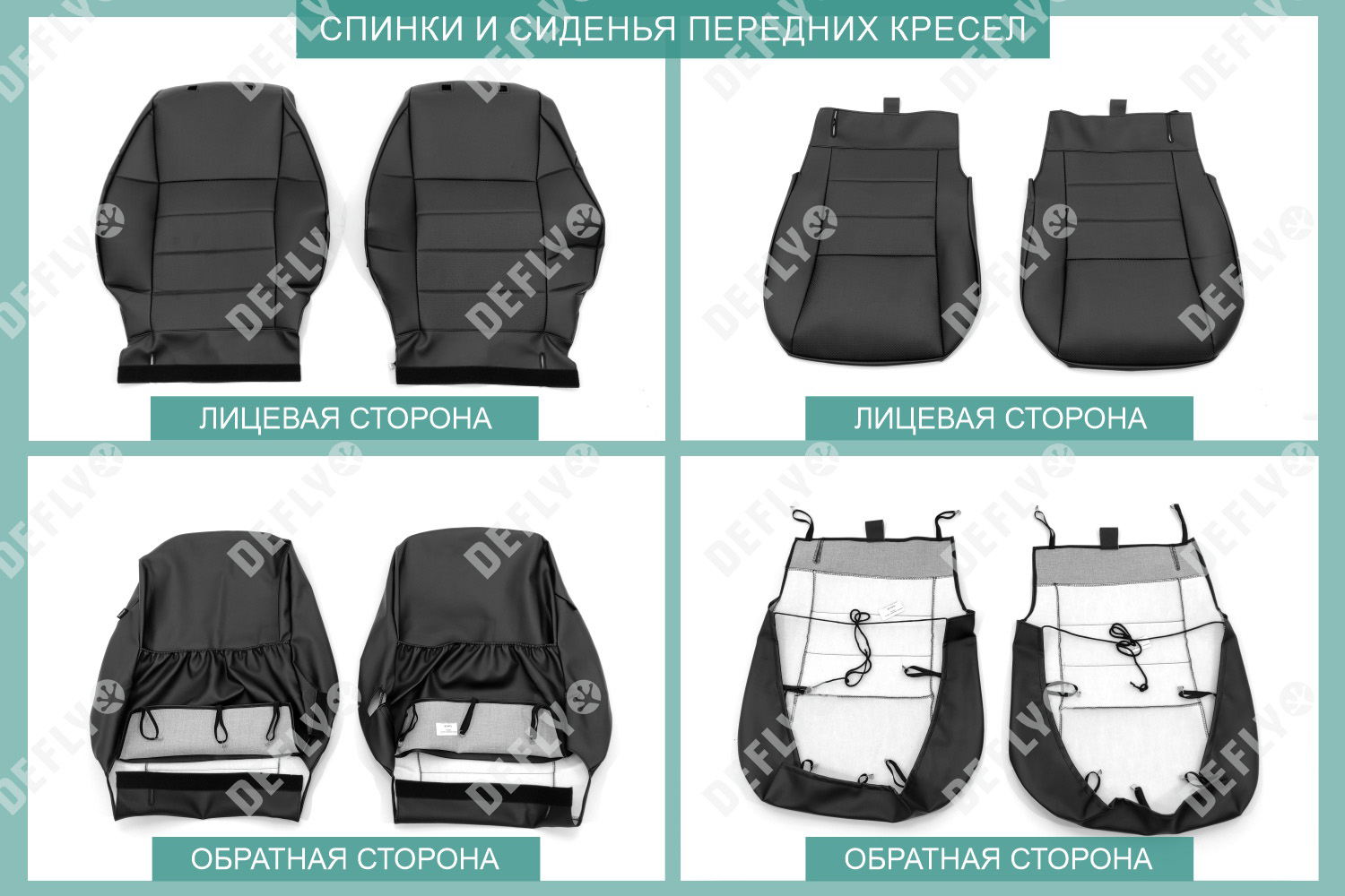 Материал: Экокожа гладкая, экокожа перфорированная, Цвет: Черный (оттенок ткани может незначительно отличаться). Модельные чехлы от производителя “Defly” индивидуально сконструированы для каждого автомобиля. Изготовленные по лекалам оригинальных кресел, чехлы гарантируют идеальную посадку. В комплектацию входят детали всех элементов салона: передних кресел, заднего дивана, третьего ряда сидений, подголовников, подлокотников и т.д. Спинки передних кресел дополнены карманами. Все швы и технологические отверстия обработаны на оверлоке. Чехлы не ограничивают заводскую функциональность салона. Наличие в чехлах специального распускаемого шва не препятствует своевременному и полному раскрытию подушек безопасности. Специально разработанная система креплений позволяет надежно зафиксировать изделия. Авточехлы изготовлены из двух видов экокожи черного цвета: гладкой и перфорированной. Перфорированная экокожа используется в центральных элементах, что обеспечивает циркуляцию воздуха. * Представленные фотографии являются примером исполнения и служат для демонстрации материалов и конструкции чехлов.